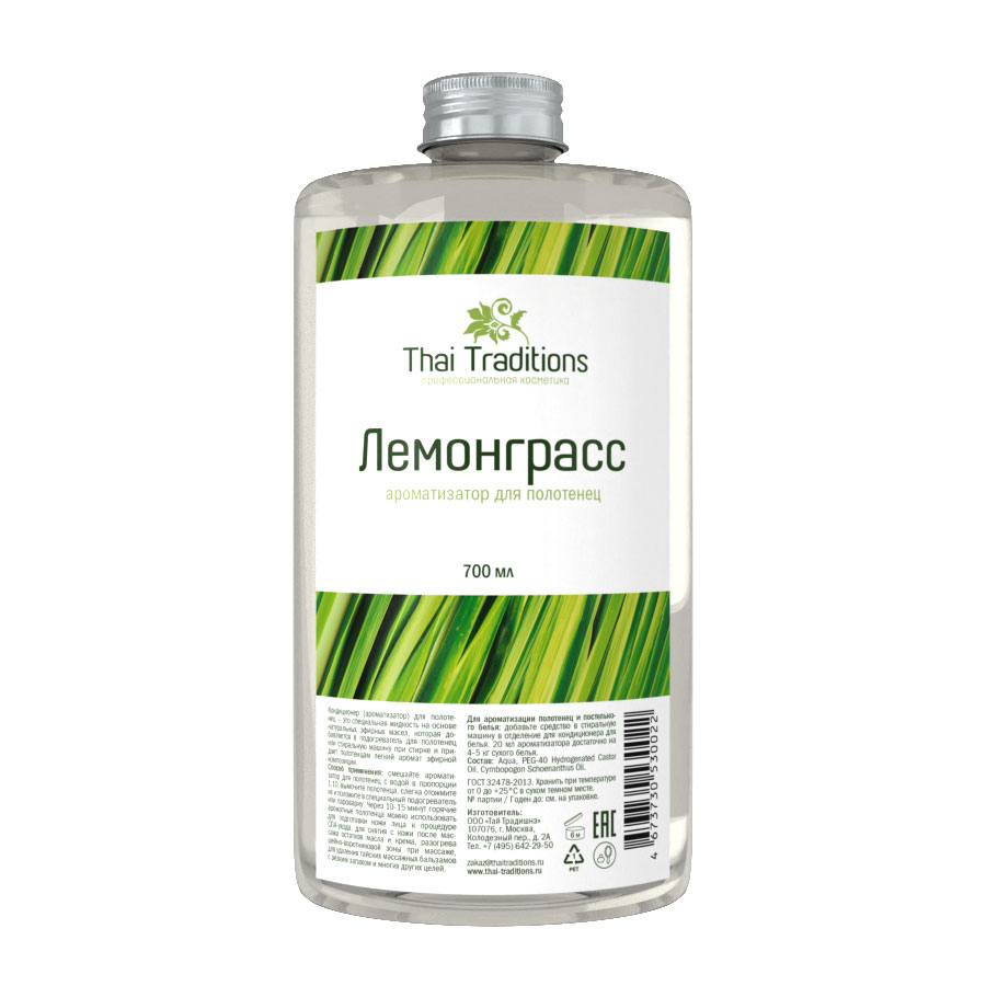 Смешайте ароматизатор для полотенец с водой в пропорции 1:10, вымочите полотенца, слегка отожмите их и положите в специальный подогреватель или пароварку. Через 10-15 минут горячие ароматные полотенца можно использовать для подготовки кожи лица к процедуре СПА-ухода, для снятия с кожи после массажа остатков масла и крема, разогрева шейно-воротниковой зоны при массаже, для удаления тайских массажных бальзамов с резким запахом и многих других целей. Для ароматизации полотенец и постельного белья: Добавьте средство в стиральную машину в отделение для кондиционера для белья. 20 мл ароматизатора достаточно на 4-5 кг сухого белья.