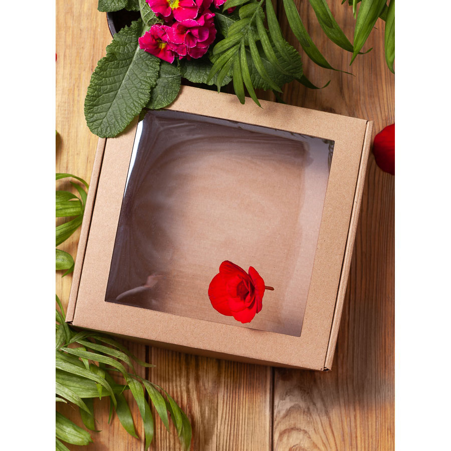 Подарочная коробочка с окошком 180х180х80 мм и наполнителем